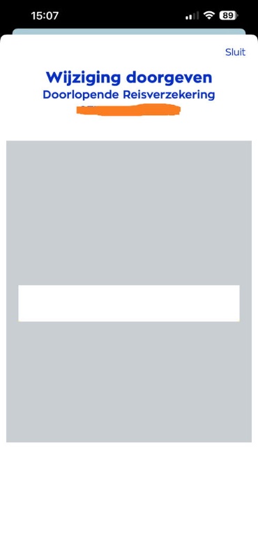 Als ik kies voor verzekering wijzigen, kom ik in een volledig grijs scherm (afb. 3) 3.jpg[/attachment] met een witte balk in het midden. Je kunt niets in dit scherm.