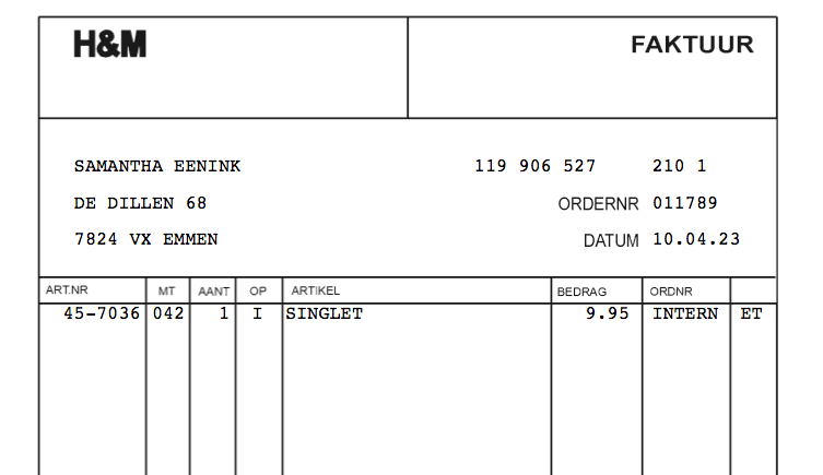 Ik kon mij niet herinneren dat ik bij de H&M een bedrag open had staan dus ik vroeg dit bedrijf om de originele nota van H&M waarop blijkt dat ik dit bedrag nog openstaat. Daar kreeg ik vervolgens dit op;