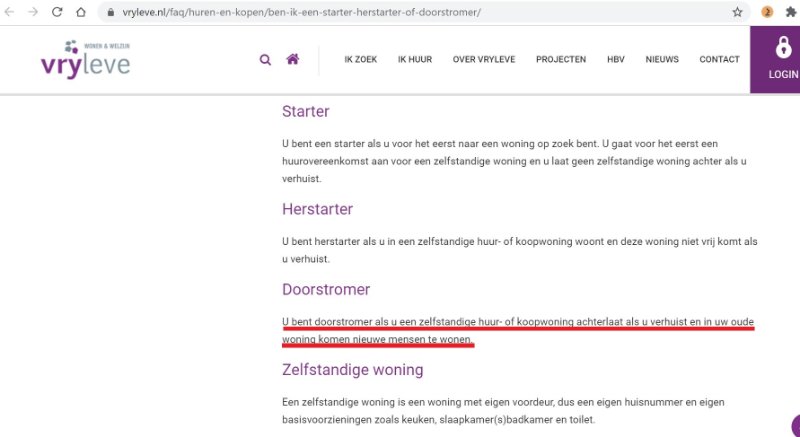 Heb ook gekeken bij andere woningbouwverenigingen in het land en die hanteren vaak andere regels nl. "doorstromers zijn mensen die een huur- of eigen woning leeg achterlaten".